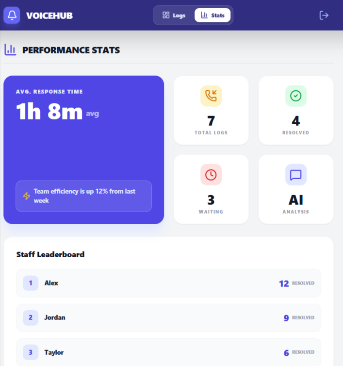 This prototype solves that problem by turning voicemails into a shared, easy-to-scan dashboard. Incoming voicemails are automatically transcribed and displayed alongside the original audio recording. Staff can quickly review each message, mark it as handled, record who responded, and leave internal notes about the outcome.